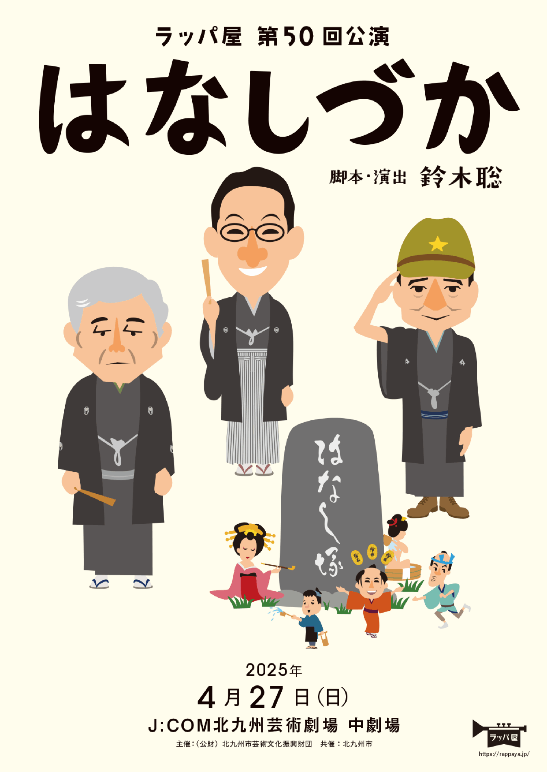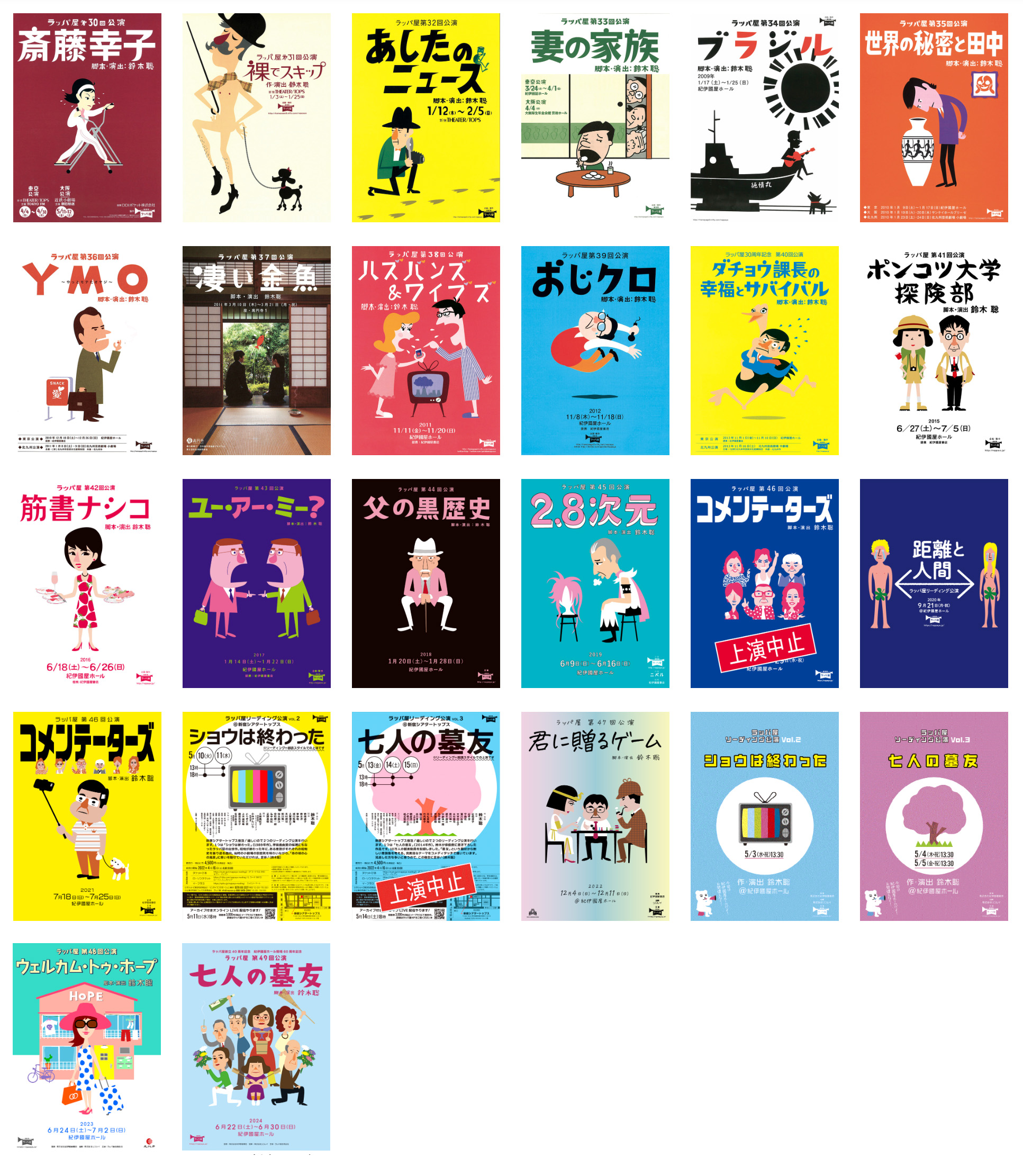 1983年から続く、老舗劇団「ラッパ屋」。2005年より、毎年一回、新宿紀伊國屋ホール公演のポスター、チラシ、チケット、またウェブサイトと、宣伝美術全般をお手伝いしています。
